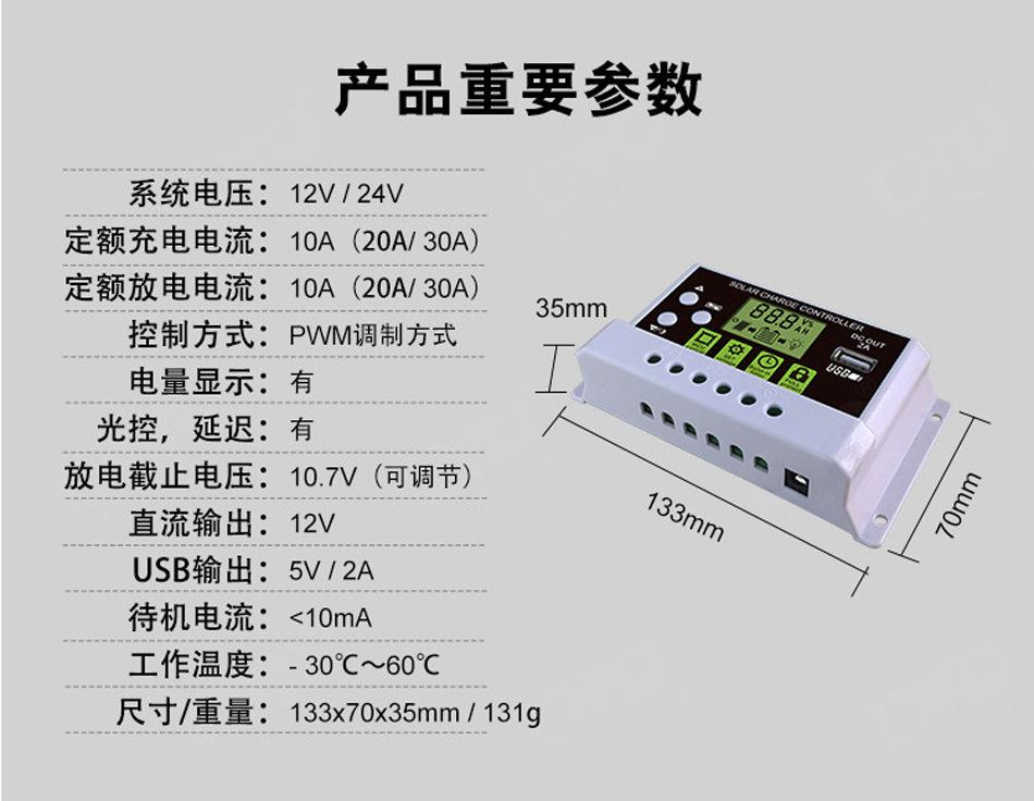 Controlador fotovoltaico PWM 12V24V con identificación automática, pantalla LCD, control remoto solar, protector de carga y descarga.