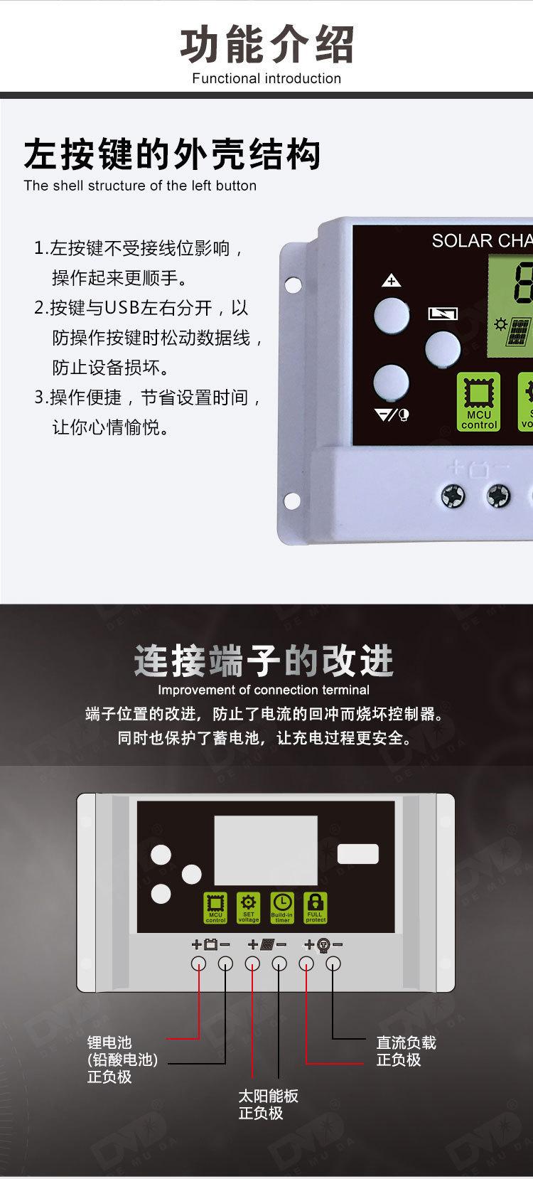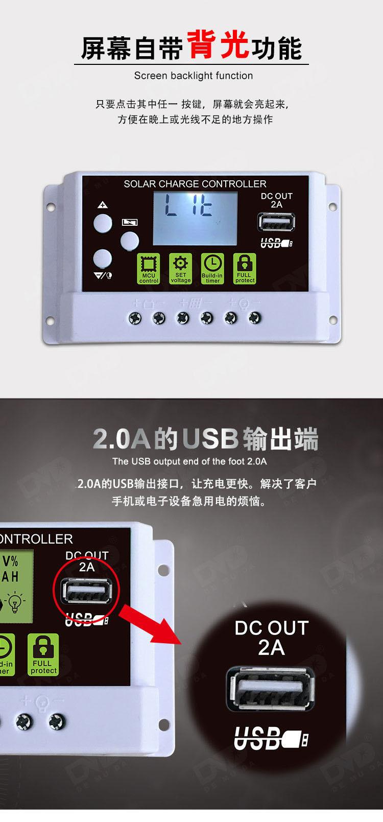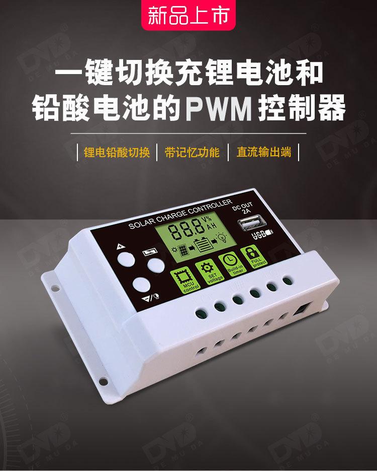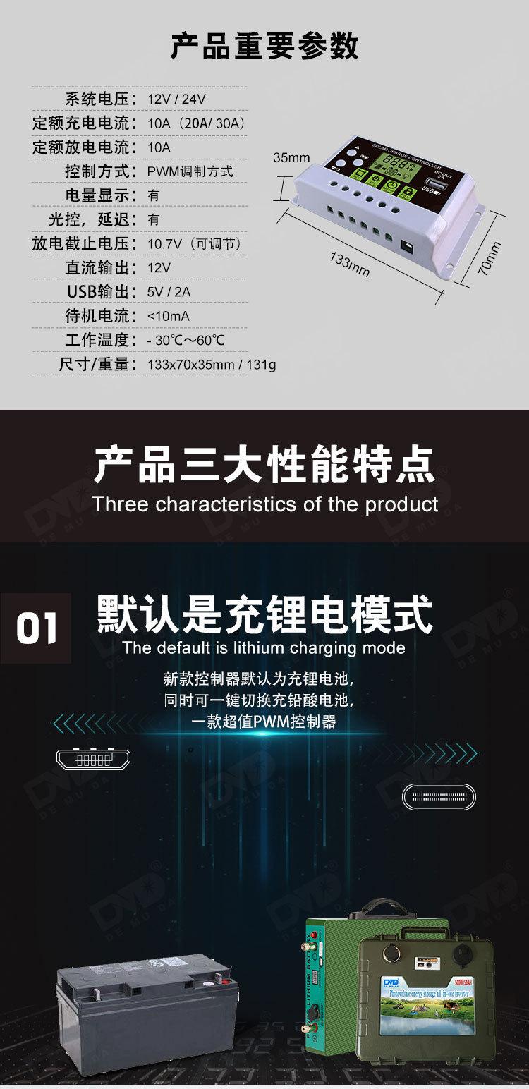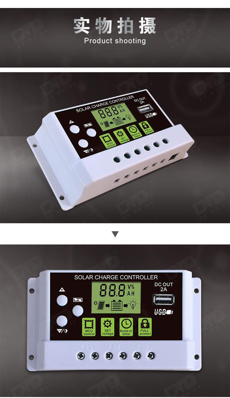 Controlador de carga de batería de litio inteligente de 30 a 12/24 V, controlador solar LED, modelo popular