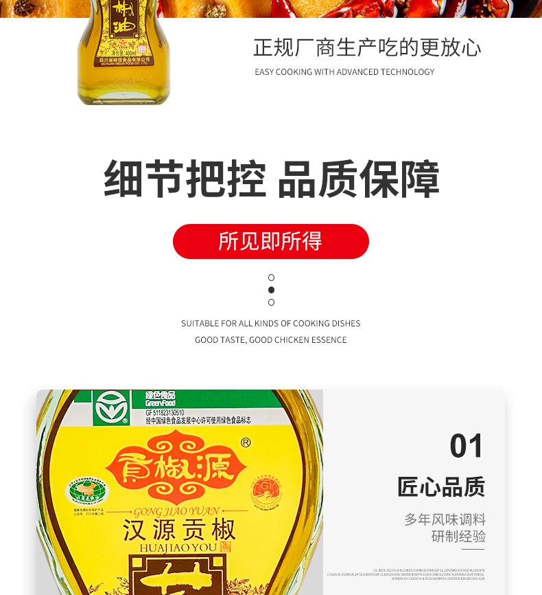 Aceite de pimienta Gongjiaoyuan 400 ml * 12 botellas Aceite de pimienta de cáñamo especial Sichuan Hanyuan Pimienta de cáñamo Fideos de catering Salsa fría