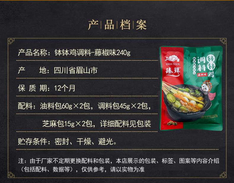 Compra Condimento especial para pollo con pimienta de ratán Zhenxian, tazón picante, bolsa de 240 g/320 g, hilo de incienso, condimento para el hogar, hilo frío al por mayor en Joom.pro