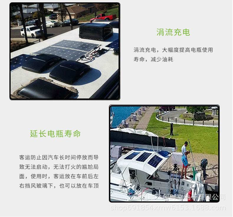 El panel solar flexible de 100W 18V se puede doblar suavemente hasta un máximo de 30 grados en un área de curva suave.