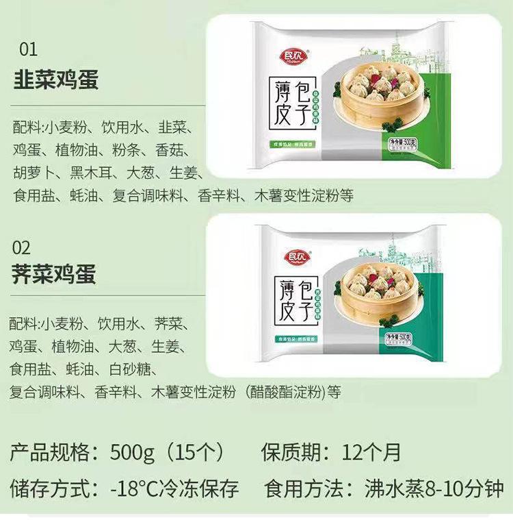Thin-skinned buns with leek and egg flavor 500g cooked skin (1 pack), Thin-skinned buns with leek and egg flav...