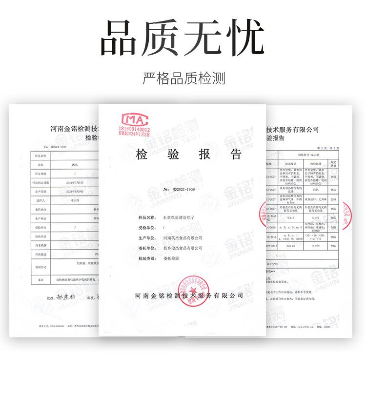 Bolsa de huevo de piel fina Minhuan Bolsa de verduras de cristal Sabor a huevo de puerro Congelado rápidamente Manojo al vapor Desayuno Semiacabado Comercial