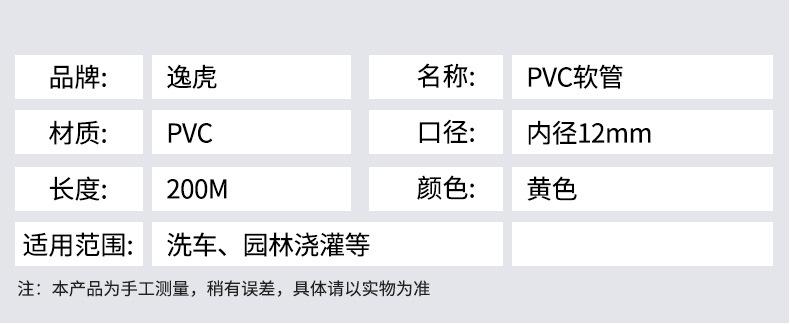 Suministros del Fabricante Herramientas de Riego de Jardín, Pistola de Agua para Lavado de Autos Doméstico, Manguera de Agua, Manguera Pvc200, Exterior Negro Amarillo