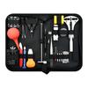 El juego incluye: un removedor de correas de reloj, una navaja para abrir fondos, un abridor de tapas de reloj, un destornillador de resorte con cabeza desmontable, un par de pinzas de acero inoxidable, un abridor de tapas de reloj de tres garras, una caja de dientes de acero de tres garras para abrir, tres destornilladores de cabeza plana (los tamaños son 1.0 1.2 1.4MM respectivamente), tres punzones para correas de acero (0.8, 0.9, 1.0MM), y un martillo metálico de doble uso.