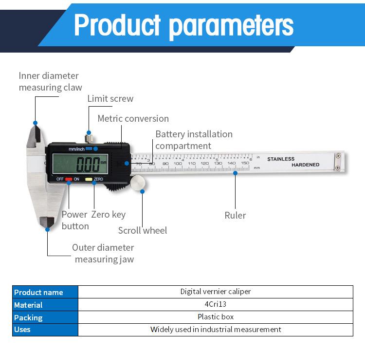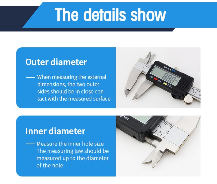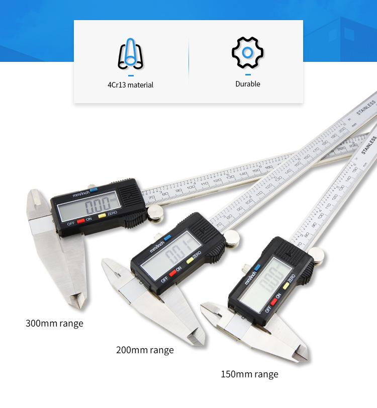 Medición de profundidad de paso de diámetro interior y exterior acero inoxidable 4cr13 pantalla digital calibrador vernier 0-150/0-200/0-300mm