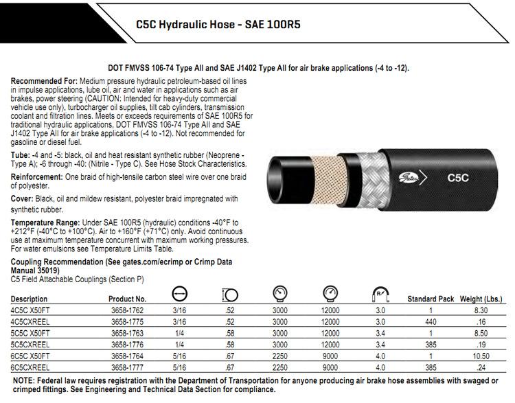 Suministro GATES C5C manguera hidráulica-SAE100R5 tubo de aceite lubricante tubo de aceite de freno