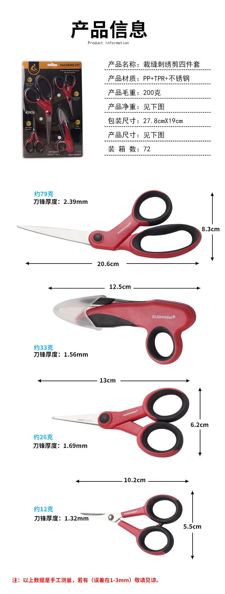 Nuevas tijeras de sastre de acero inoxidable de cuatro piezas, tijeras de bordado hechas a mano para el hogar, tijeras de hilo, tijeras de tela
