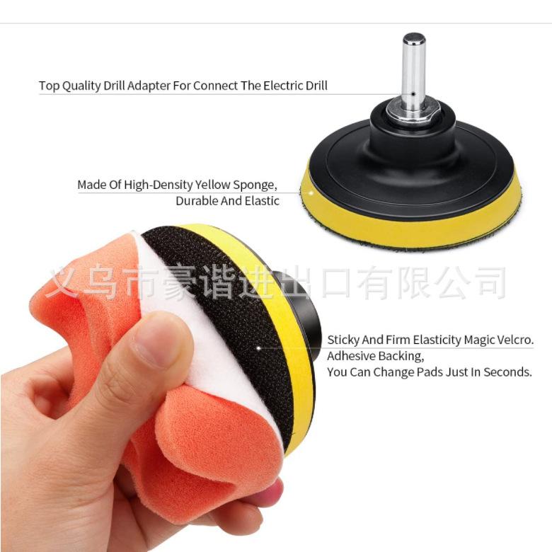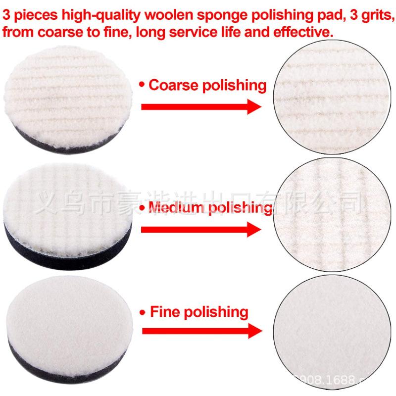 1. Nombre: Esponja para pulir belleza de coche, almohadilla de lana sintética, disco autoadhesivo, juego de 12 piezas