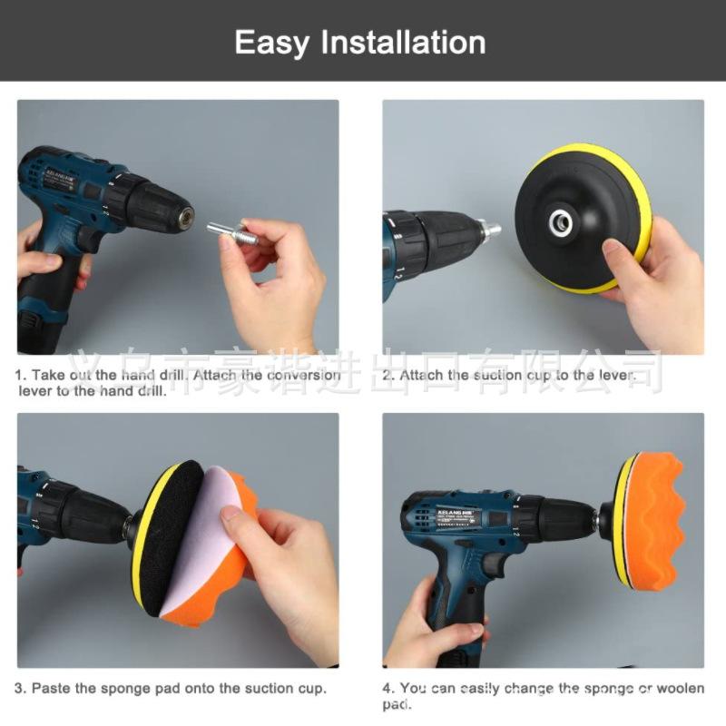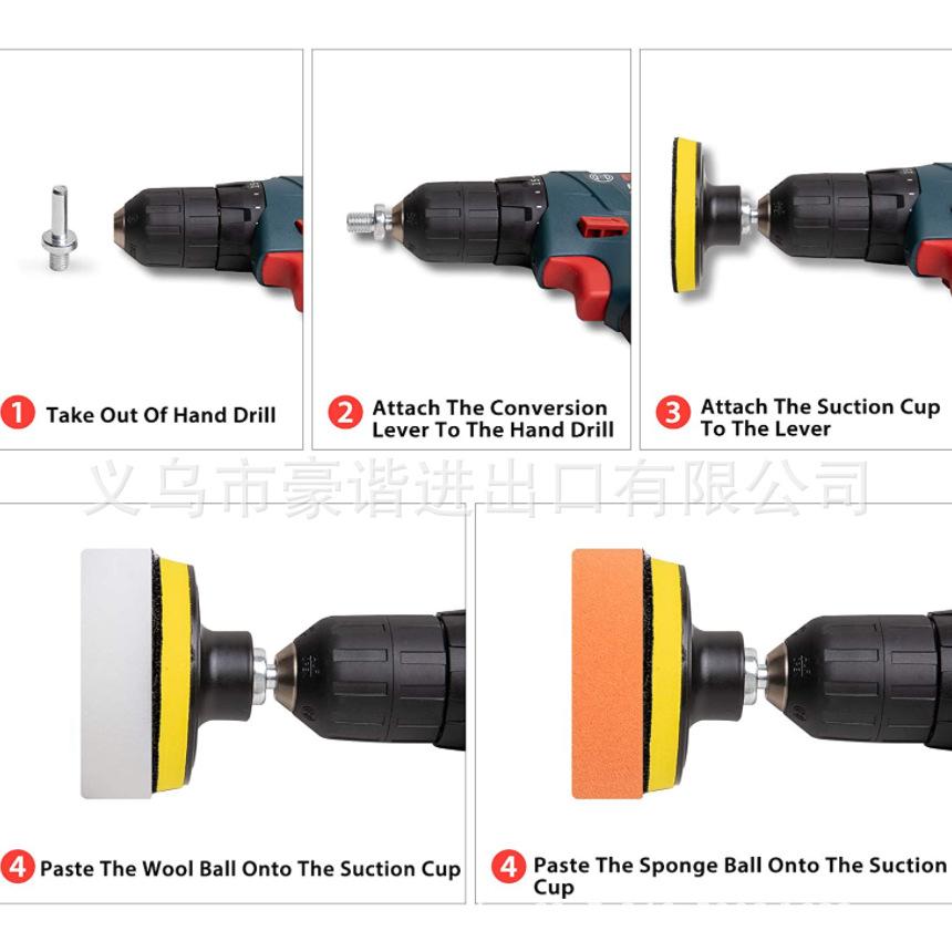 Este producto se puede aplicar a taladros de mano (diámetro de la varilla del taladro de aproximadamente 8 mm / 0.31 pulg.), amoladoras angulares de velocidad ajustable (no se recomienda que las amoladoras angulares ordinarias tengan velocidades demasiado rápidas), máquinas pulidoras profesionales y otros equipos.