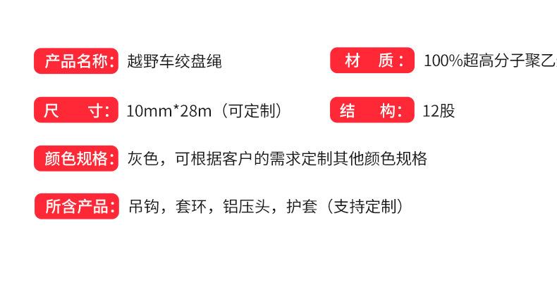 Cable de cabrestante para vehículos todoterreno de polietileno de alto peso molecular, 12 hebras con gancho para exteriores, 10 mm x 28 m, cable de tracción para remolque