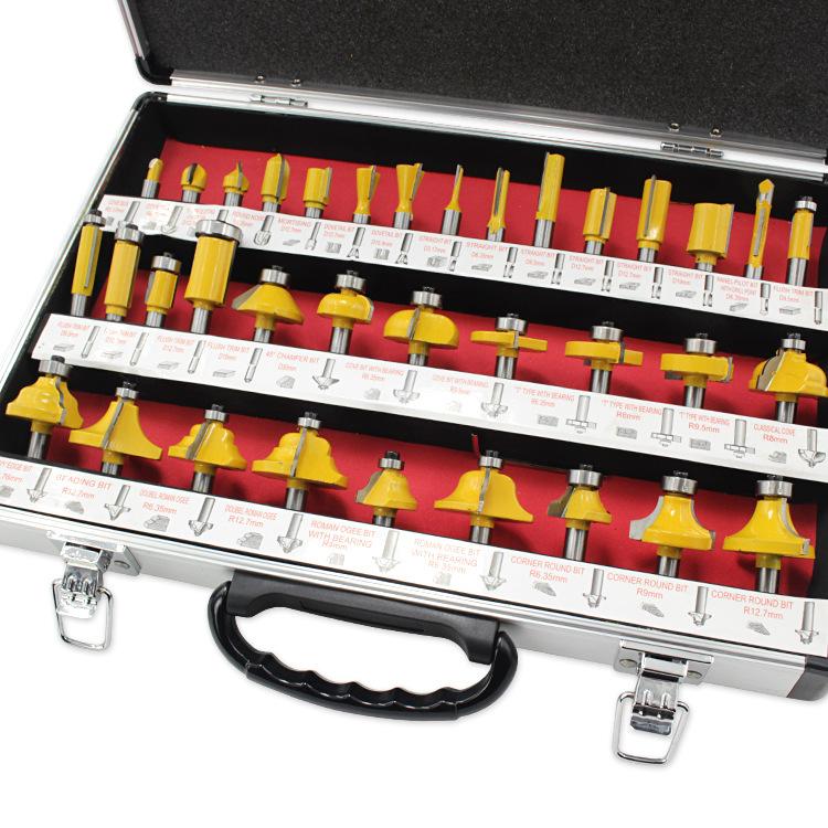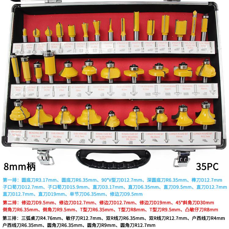 Juego de fresas para carpintería vástago de 8 mm fresa para rebajar Bak fresa para grabar fresa para chaflanar juego de combinación de cabezales de corte 35 piezas