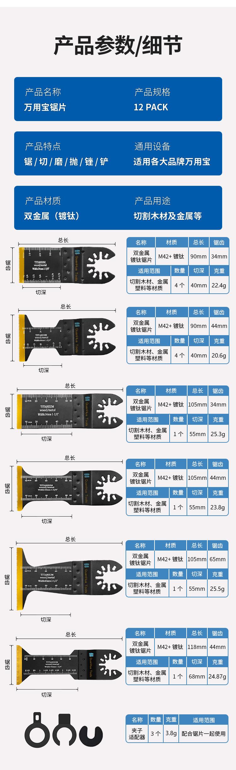 Juego de 12 Hojas de Sierra Híbridas Multiusos Accesorios de Herramientas de Hojas de Sierra Oscilante Multiusos
