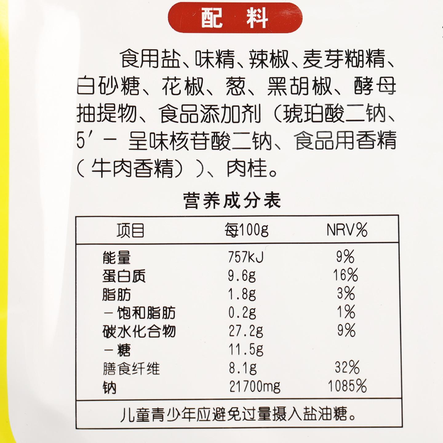 Edible salt, monosodium glutamate, chili, maltodextrin, white granulated sugar, pepper, onion, black pepper, y...