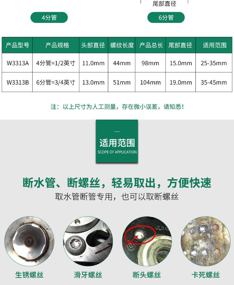 Power lion W3313 tubería de agua tubería rota tornillo de cabeza rota juego de extracción 4 puntos 6 puntos válvula de triángulo grifo diente inverso