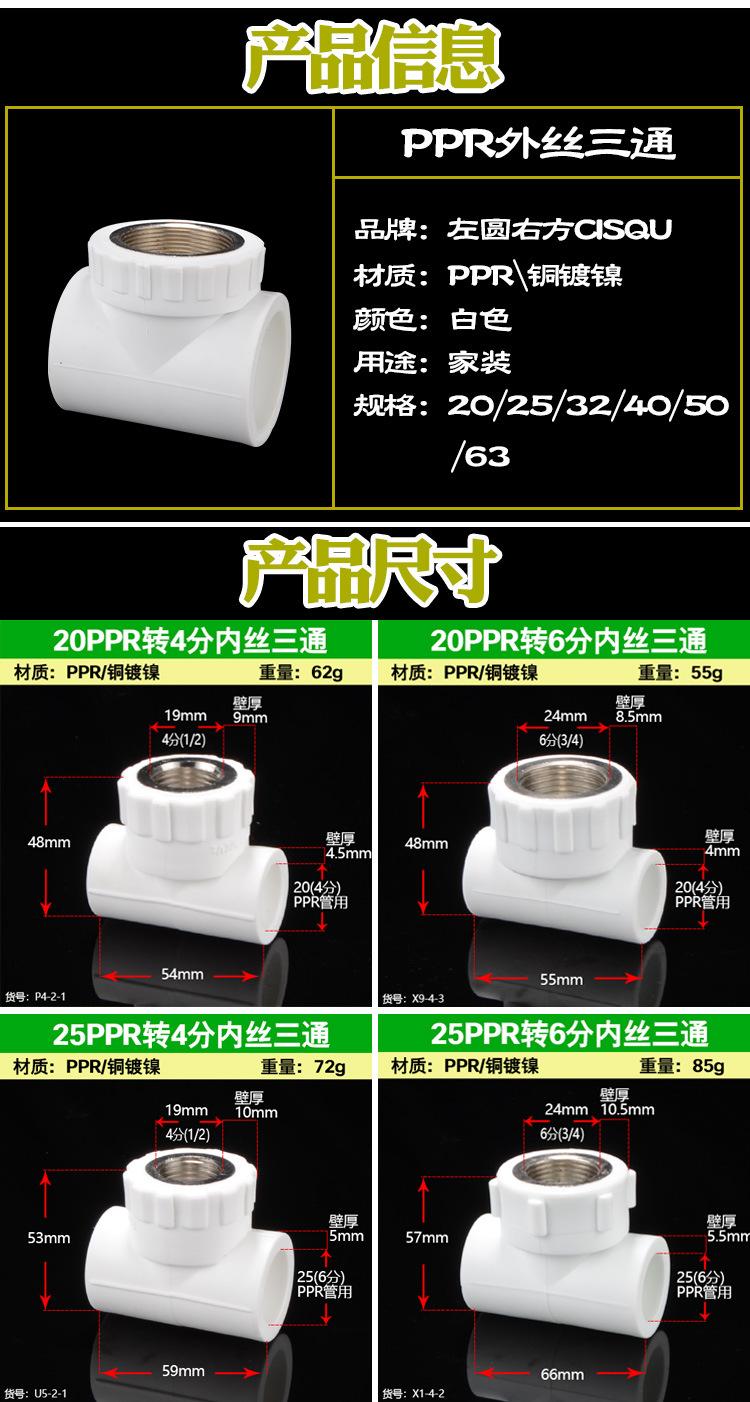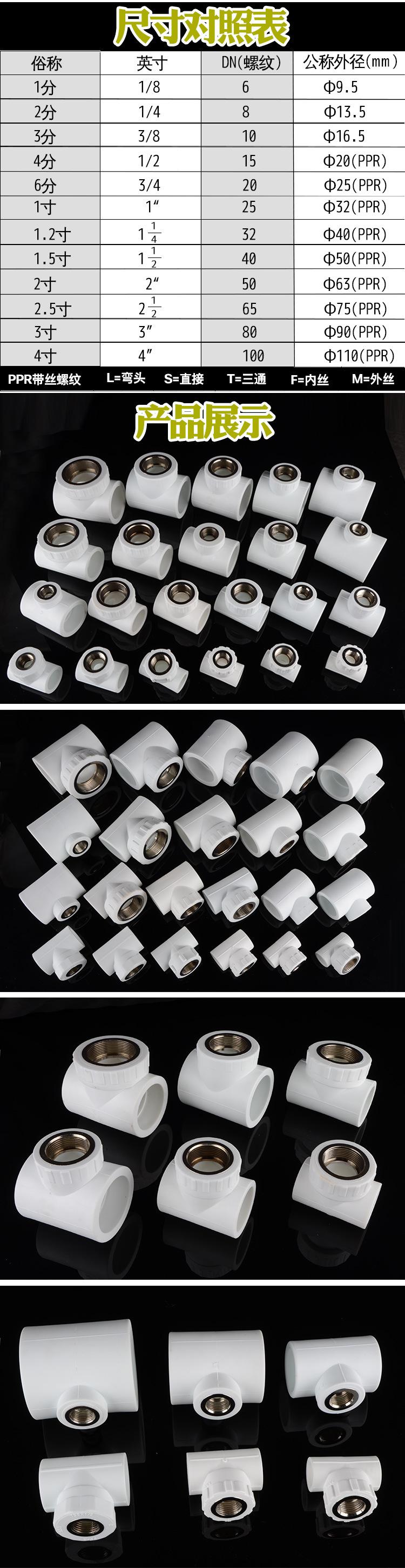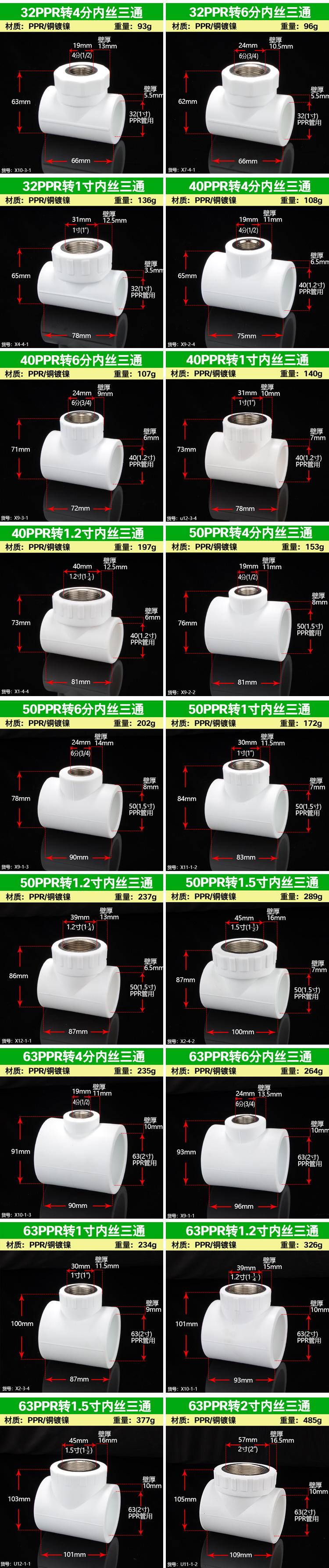 Decoración del hogar 20PPR tee de cable interno accesorios para juntas de tubería de suministro de agua 63/50/40/32/25 codo 4 tee de cable interno