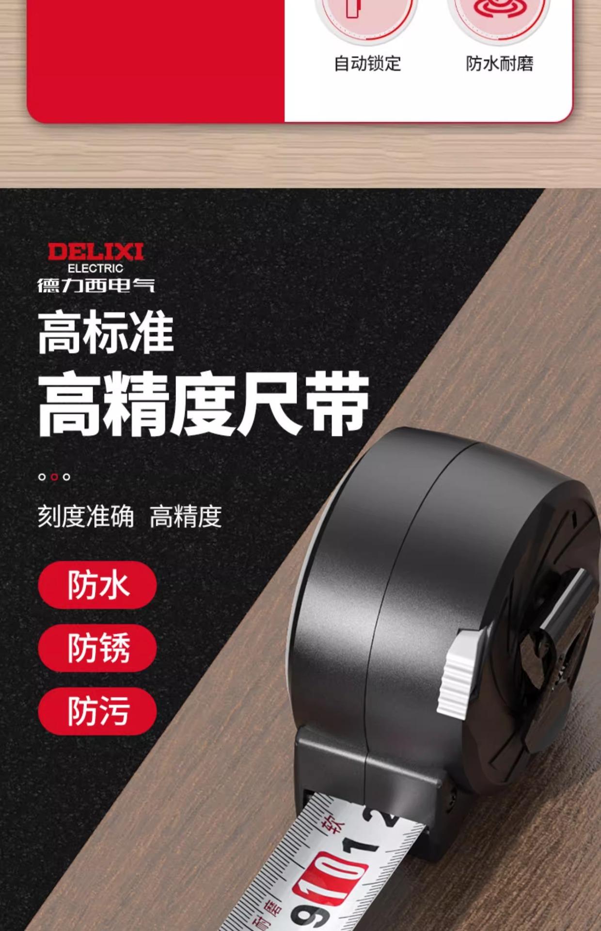 Cinta Métrica Delixi Herramienta de Medición Doméstica Regla de Acero Doméstica Engrosada 5.3m Cinta Métrica Autoblocante Dropshipping