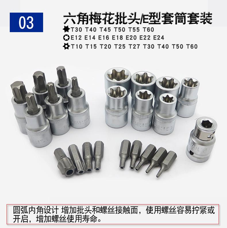 Boca de cabeza de llave Allen hexagonal destornillador de arroz destornillador T destornillador estrella E destornillador con forma de flor boquilla