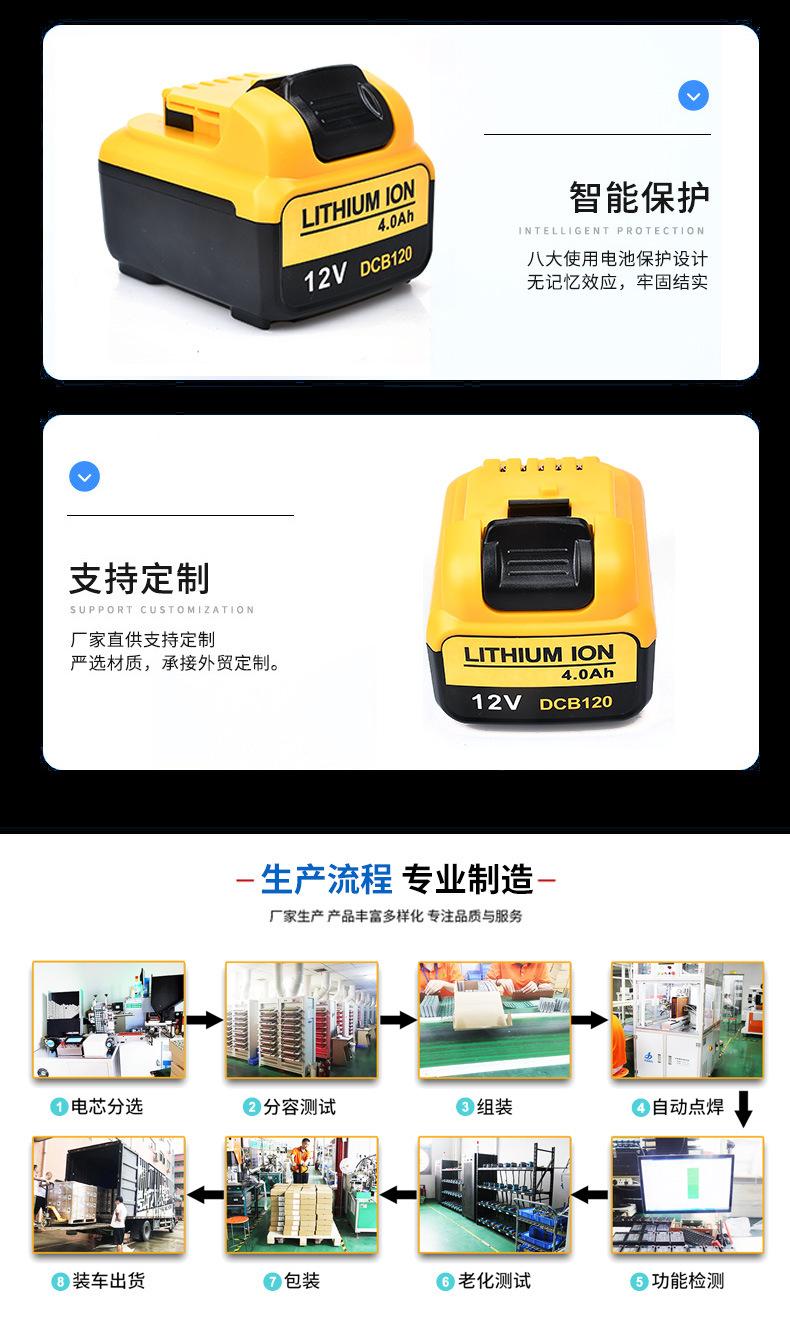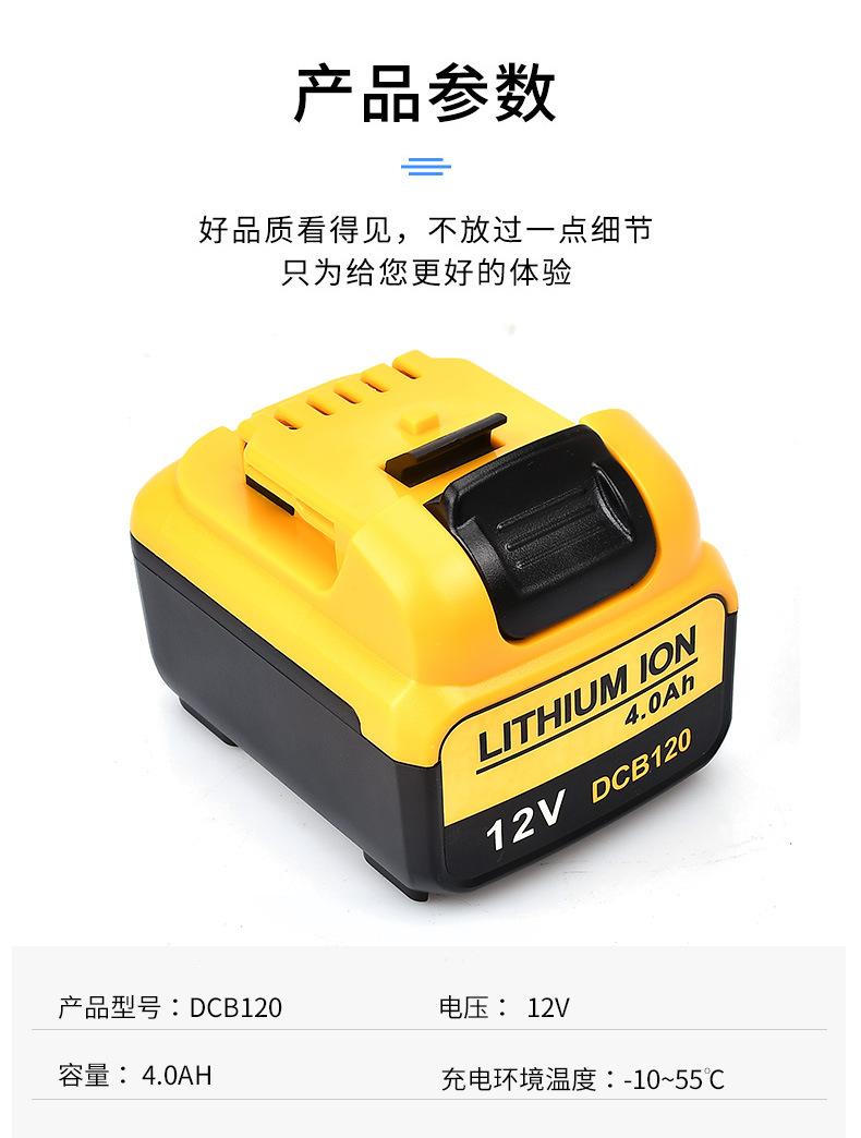 Aplicable a accesorios de herramientas eléctricas Dewei Batería de litio de 12 V Taladro manual DCB120 Cargador de batería de litio de 3,0 AH