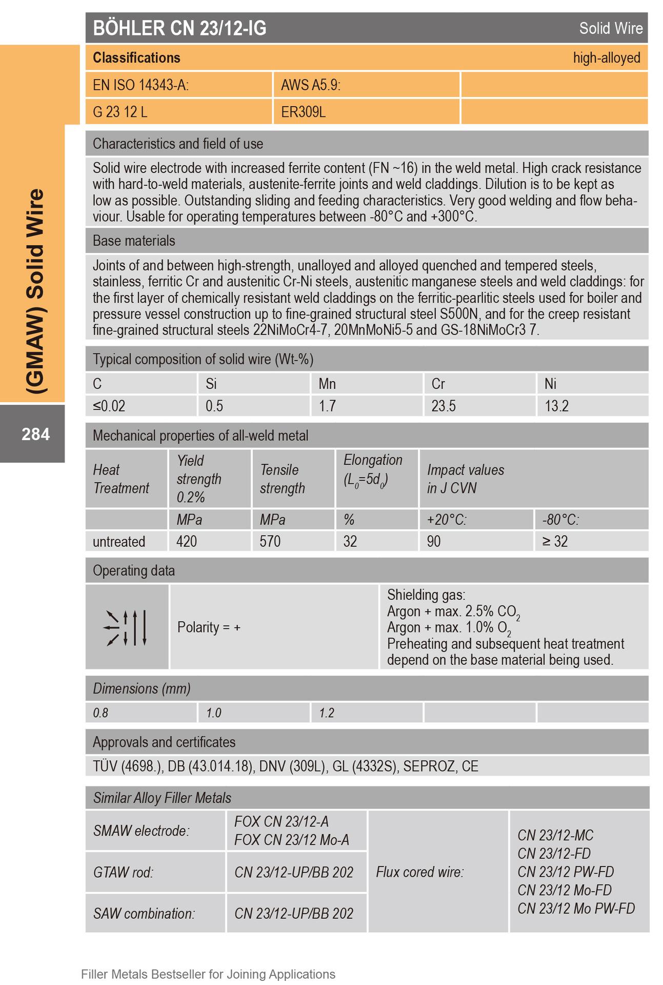 Alambre de soldadura Austria Bole ER309L alambre de soldadura de acero inoxidable BOHLER CN 23/12-IG alambre de soldadura de acero inoxidable