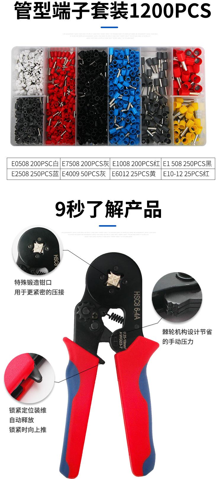 Two-color 0.25-10 tube pliers, Orange 0.25-10 tube pliers, 1200pcs tube terminal, Two-color 0.25-10+1200pcs te...
