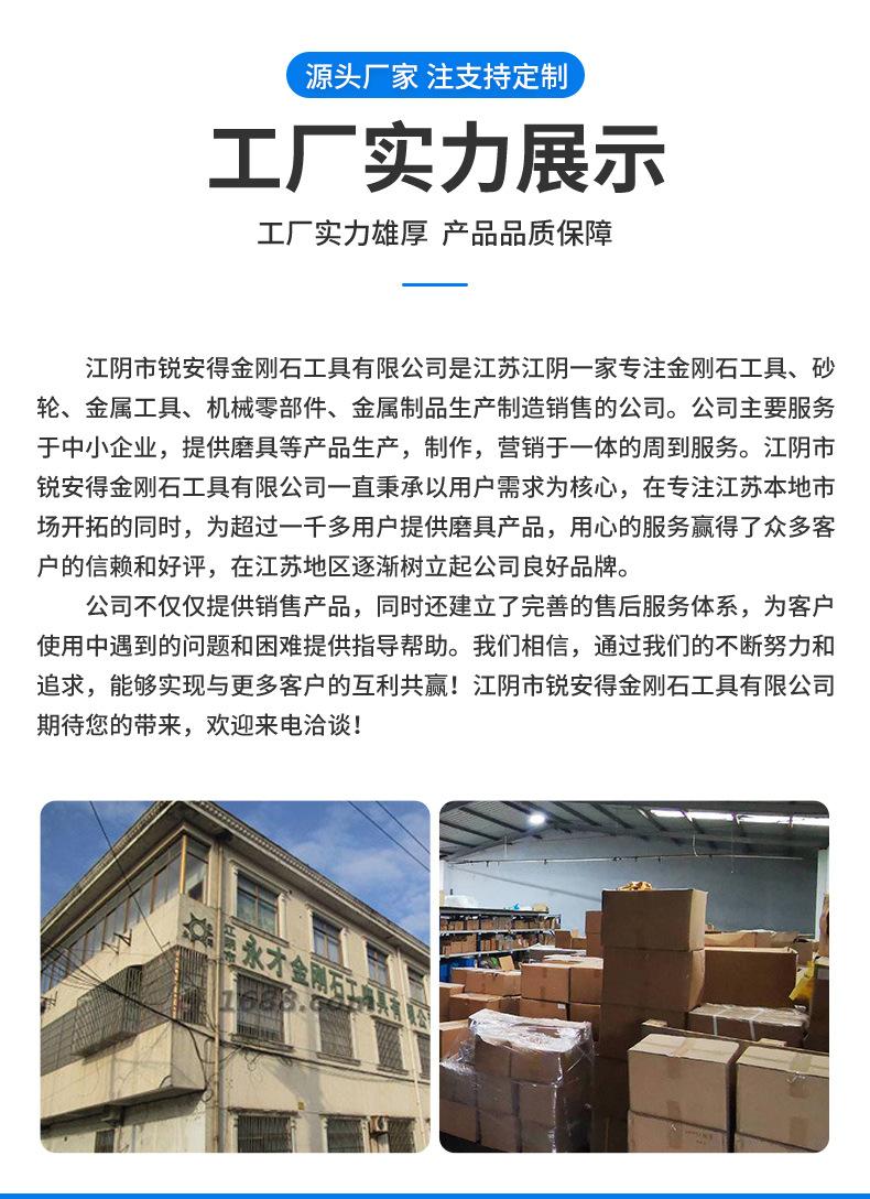 Características: Las características de los abrasivos de diamante (alta dureza, alta resistencia a la compresión, buena abrasividad) hacen que las herramientas de rectificado de diamante sean una herramienta ideal para rectificar materiales duros y quebradizos y carburo cementado en el rectificado. No solo es eficiente y precisa, sino que también tiene buena rugosidad, bajo consumo de herramienta de rectificado, larga vida útil y también puede mejorar las condiciones de trabajo. Por lo tanto, se utiliza ampliamente en metales con bajo contenido de hierro y materiales duros y quebradizos no metálicos que son difíciles de procesar con herramientas de rectificado ordinarias, como carburo cementado, porcelana de alto contenido de aluminio, vidrio óptico, gemas de ágata, materiales semiconductores, piedra, etc.