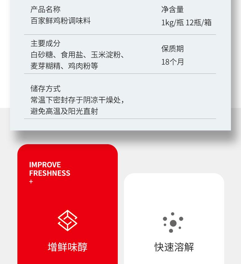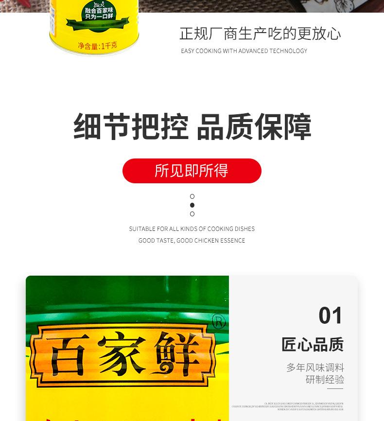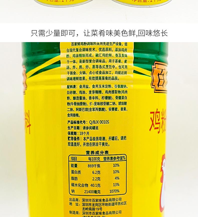 Polvo de pollo fresco Baijia, botella de 1 kg, para cocinar sopa, concentrado comercial, fresco y fragante, en lugar de condimento en polvo gourmet con esencia de pollo.