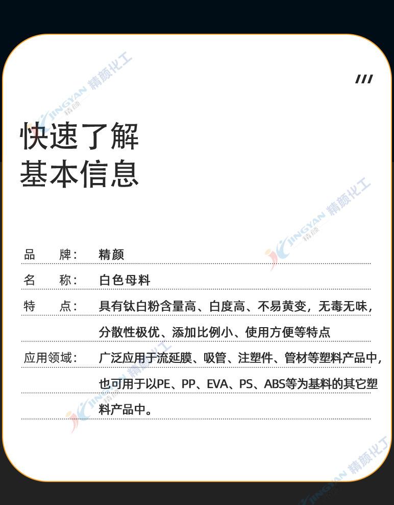 Compra Masterbatch blanco PP/PE inyección de plástico soplado dibujo de película de dióxido de titanio de alta concentración Fabricante de masterbatch al por mayor en Joom.pro