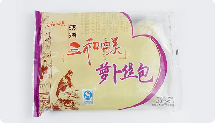 Bolsa de seda de rábano Sanhe Simei, especialidad de Yangzhou, bolsa de 360 g, bollo relleno al vapor congelado rápidamente, pasta para desayuno, postre, caja completa de 12 bolsas