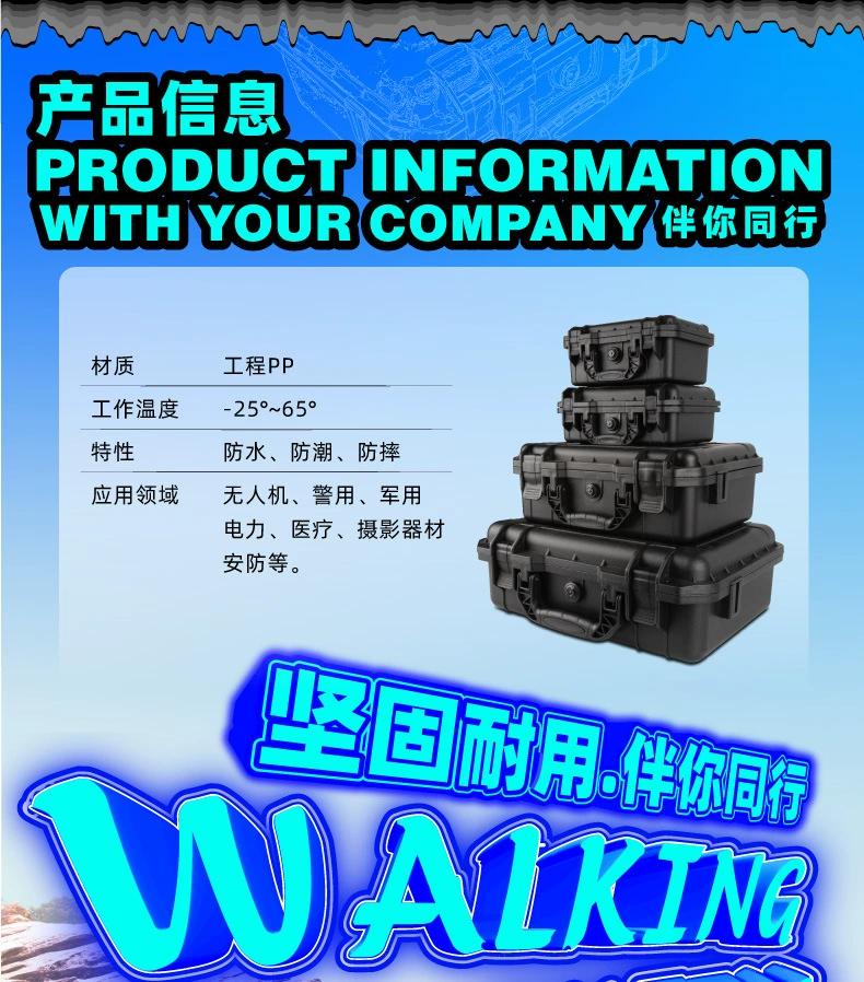 Caja de plástico impermeable sellada para almacenamiento de equipos portátiles, caja de herramientas para instrumentos de fotografía portátiles, caja resistente a caídas.