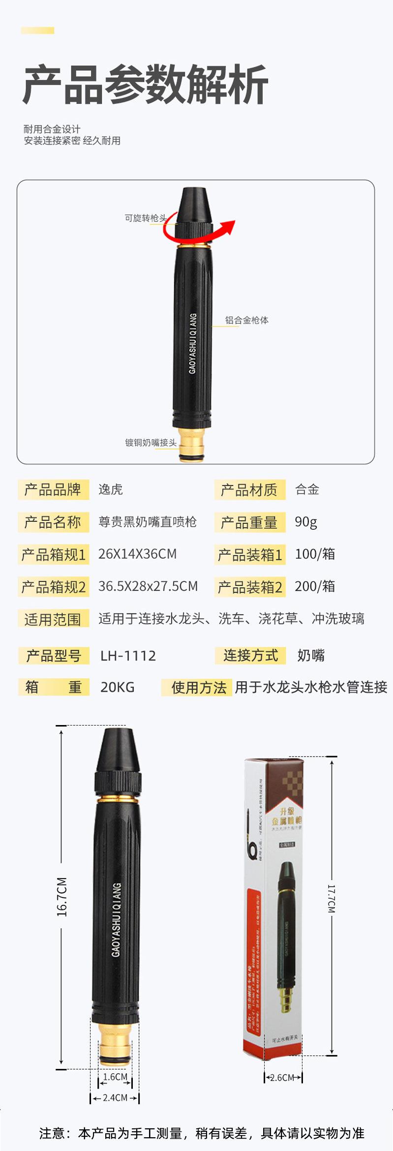 Suministro directo de fábrica pistola de agua para lavado de autos de rociado directo al por mayor aleación cobre chapado tipo boquilla jardín doméstico negro pistola de rociado directo