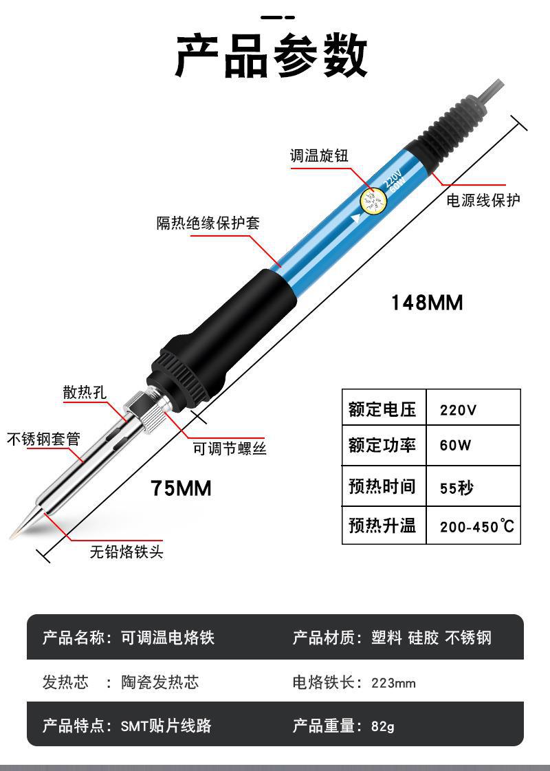 Soldador de control de temperatura transfronterizo de 60 W, herramienta de reparación de soldadura electrónica doméstica con calentamiento interno, soldador eléctrico de temperatura constante, traje V