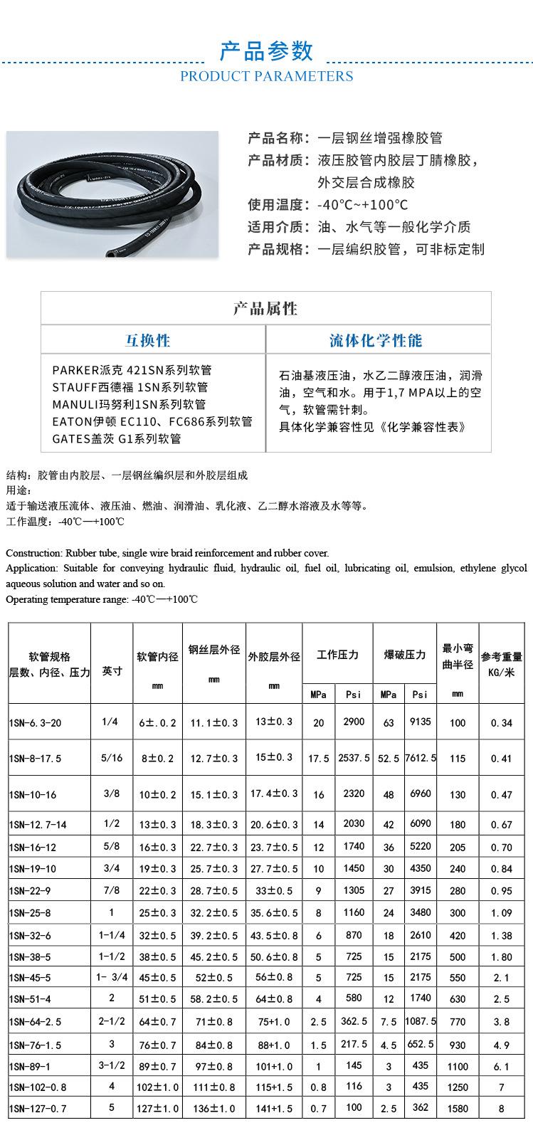 1/4 inch Φ6 one layer steel wire woven 20MPA, 5/16 inch Φ8 steel wire braided 17.5MPA, 3/8 inch Φ10 layer stee...
