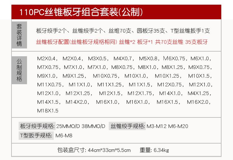 Juego de 110 machos de roscar métricos, machos de roscar manuales, machos de roscar giratorios, juego combinado de machos de roscar métricos