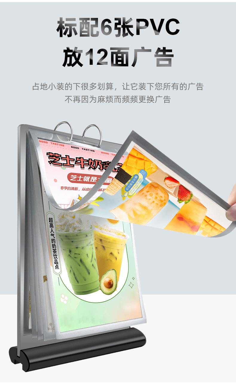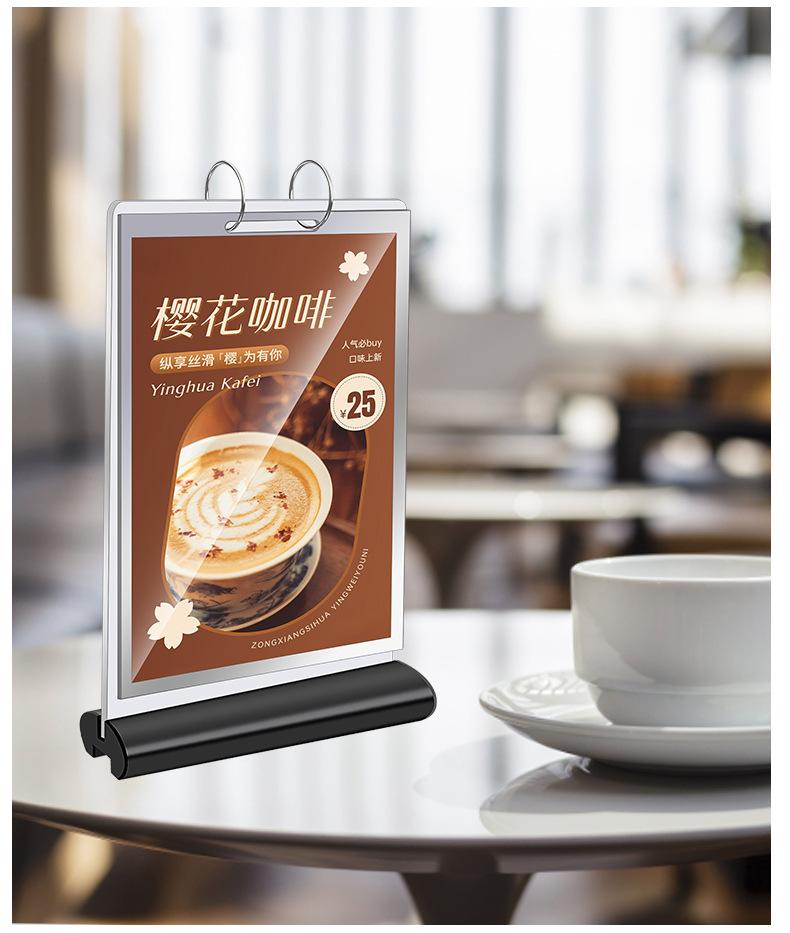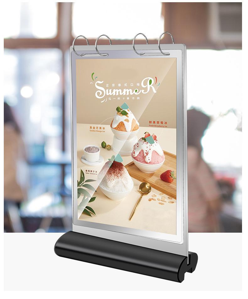 Expositor de tarjetas de mesa abatible de aleación de aluminio, soporte de exhibición promocional para libros de hojas sueltas, para publicidad en tiendas de té con leche, precio de pie, letrero para mesa de comedor