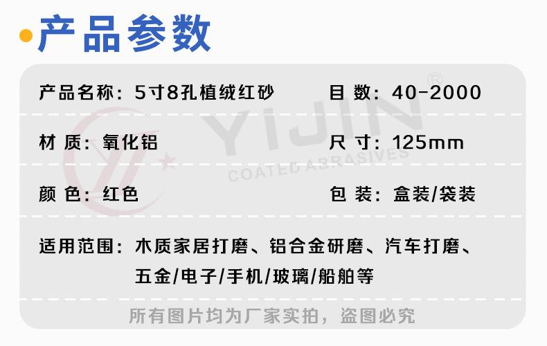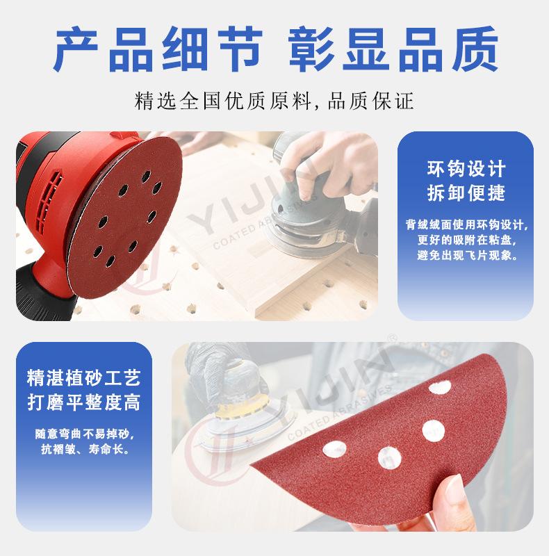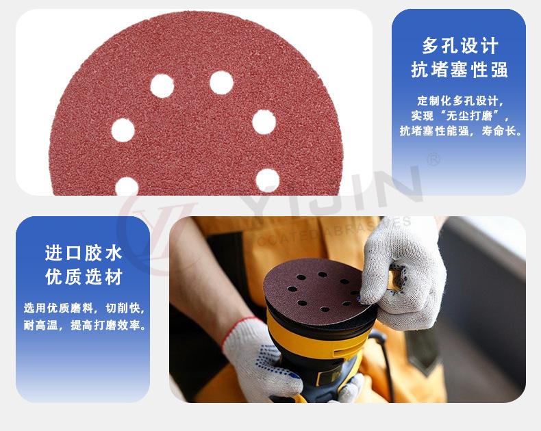 Disco de Lija Rojo de 5 Pulgadas y 8 Agujeros de Venta Caliente Transfronterizo 125 mm Lija Arena Productos de Madera Pulido de Muebles Papel de Lija Papel de Lija Flocado