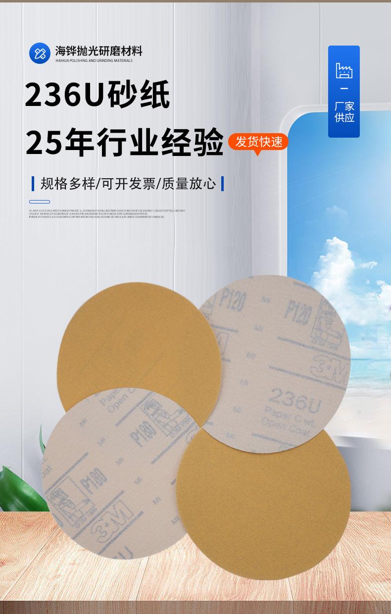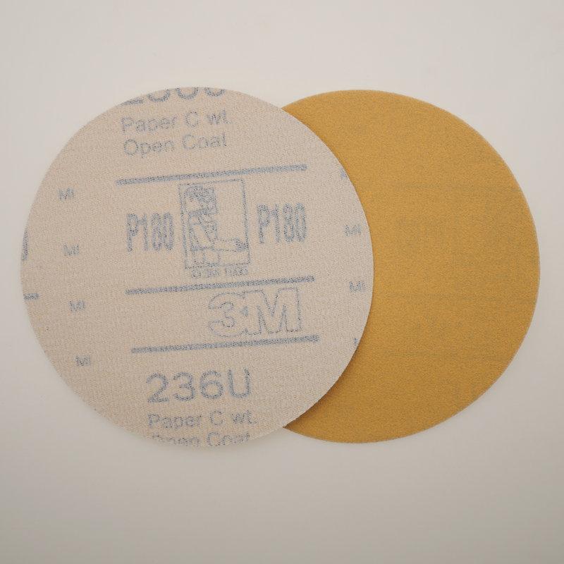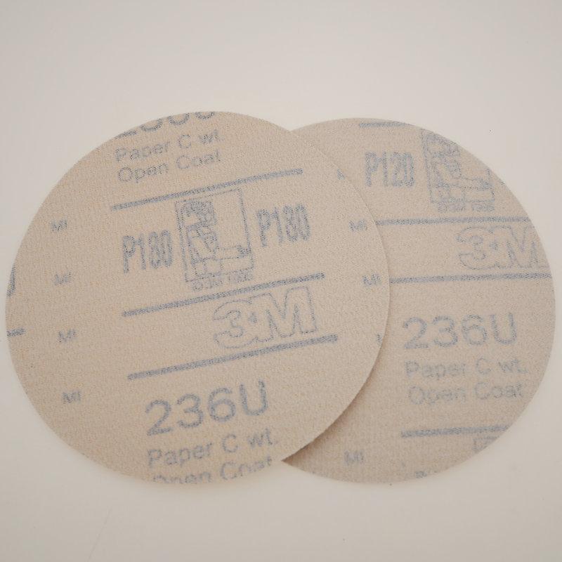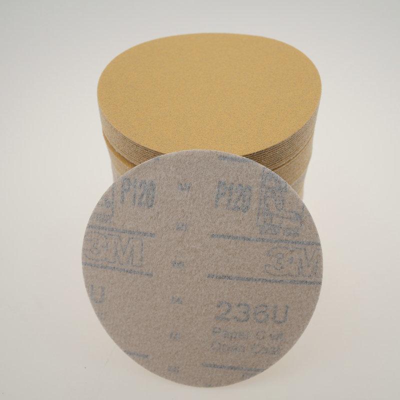 Papel de lija 3M236U de 5 pulgadas para pulido en seco de automóviles, papel de lija redondo con reverso autoadhesivo y flocado, fabricante de hojas de papel de lija