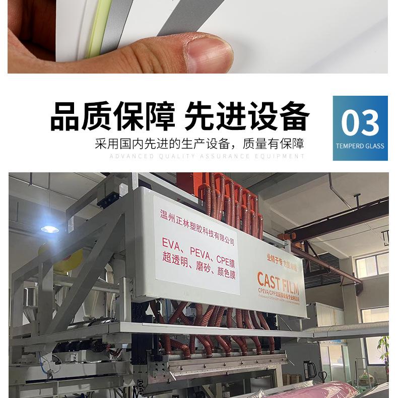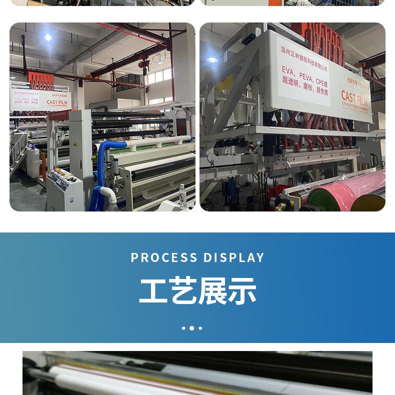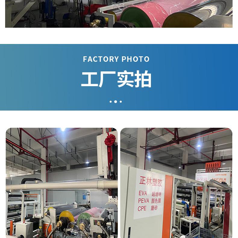 Wenzhou ZhenglinTecnología del plásticoCo., Ltd. se especializa en la producción de EVA, PEVA, película de PE, película ultratransparente, esmerilada, película de color, etc. La empresa se adhiere a la búsqueda de la verdad y a lo pragmático. Política empresarial rigurosa y dedicada, estricto sistema de garantía de calidad, en el nuevo siglo seguiremos el propósito de innovación, progreso, rigor, pragmatismo y el espíritu emprendedor de excelencia y excelencia, crear buenos productos, buenos servicios, elaborar cuidadosamente cada producto, buena calidad, buena eficiencia, detalles. Hemos estado operando según el principio de sobrevivir por la calidad y ganar el futuro por la integridad. ¡Esperamos su visita a la fábrica y su consulta!