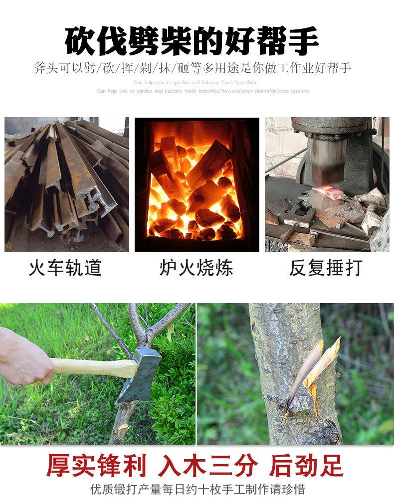 Hacha de acero forjado con riel y borde de acero para cortar madera, hacha para cortar árboles, hacha doméstica hecha a mano, hacha para carpintería, hoja simple, hoja parcial