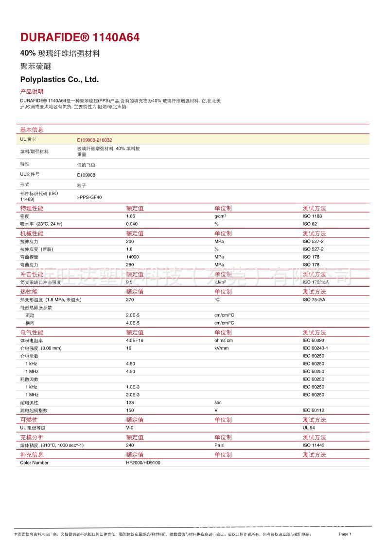 Fibra reforzada con 40% de retardante de llama para aparatos electrónicos PPS/Japón Baoli/1140A64