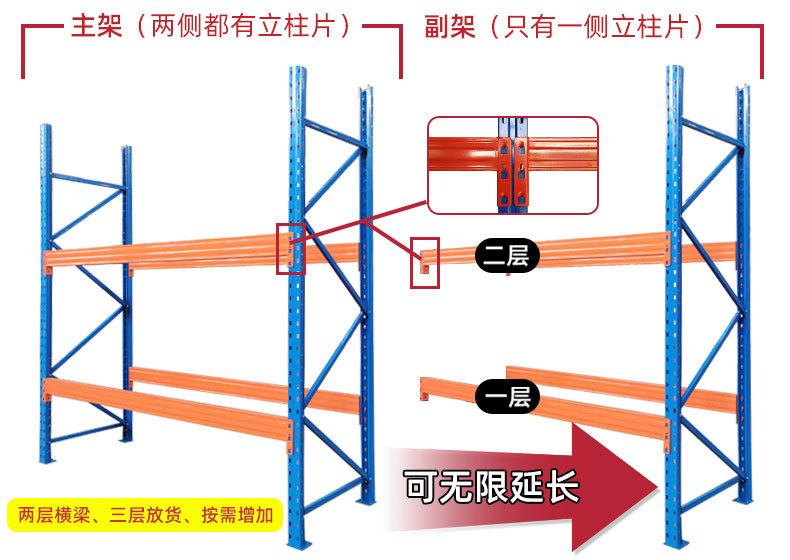 Estantes de almacenamiento de alta resistenciaSu ámbito de aplicación es muy amplio, e incluye electrónica, electrodomésticos, logística, alimentos, bebidas, muebles, ropa, automóviles, neumáticos, productos químicos, supermercados y otras industrias. Puede satisfacer la necesidad de transportar mercancías de diversos pesos y utilizarse con montacargas.