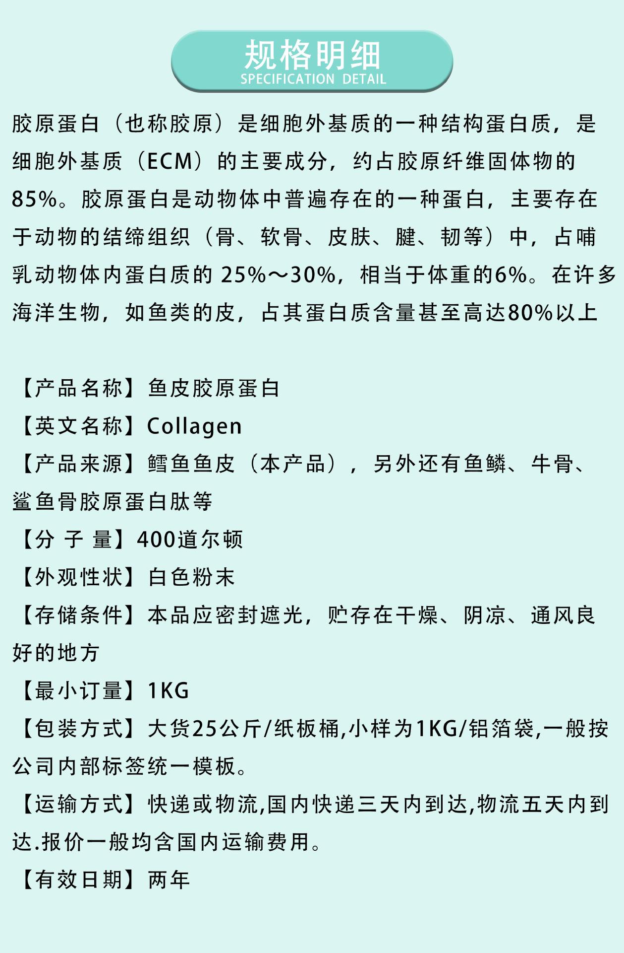 Péptido de colágeno de bacalao, péptido de colágeno de piel de pescado de aguas profundas, péptido de molécula pequeña de grado alimenticio, 500 g por bolsa