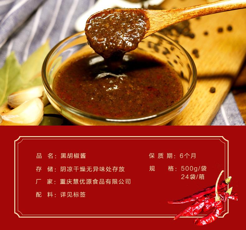 Chongqing Huiyouyuan Salsa para Inmersión de Hot Pot Sabor Salsa de Pimienta Negra para Bistec 500g Condimento para Alimentos Halal Salsa de Res Pimienta Negra Comercial