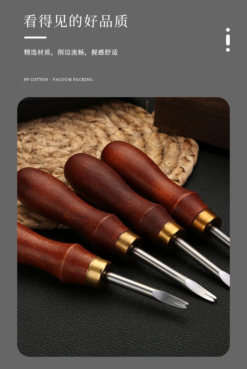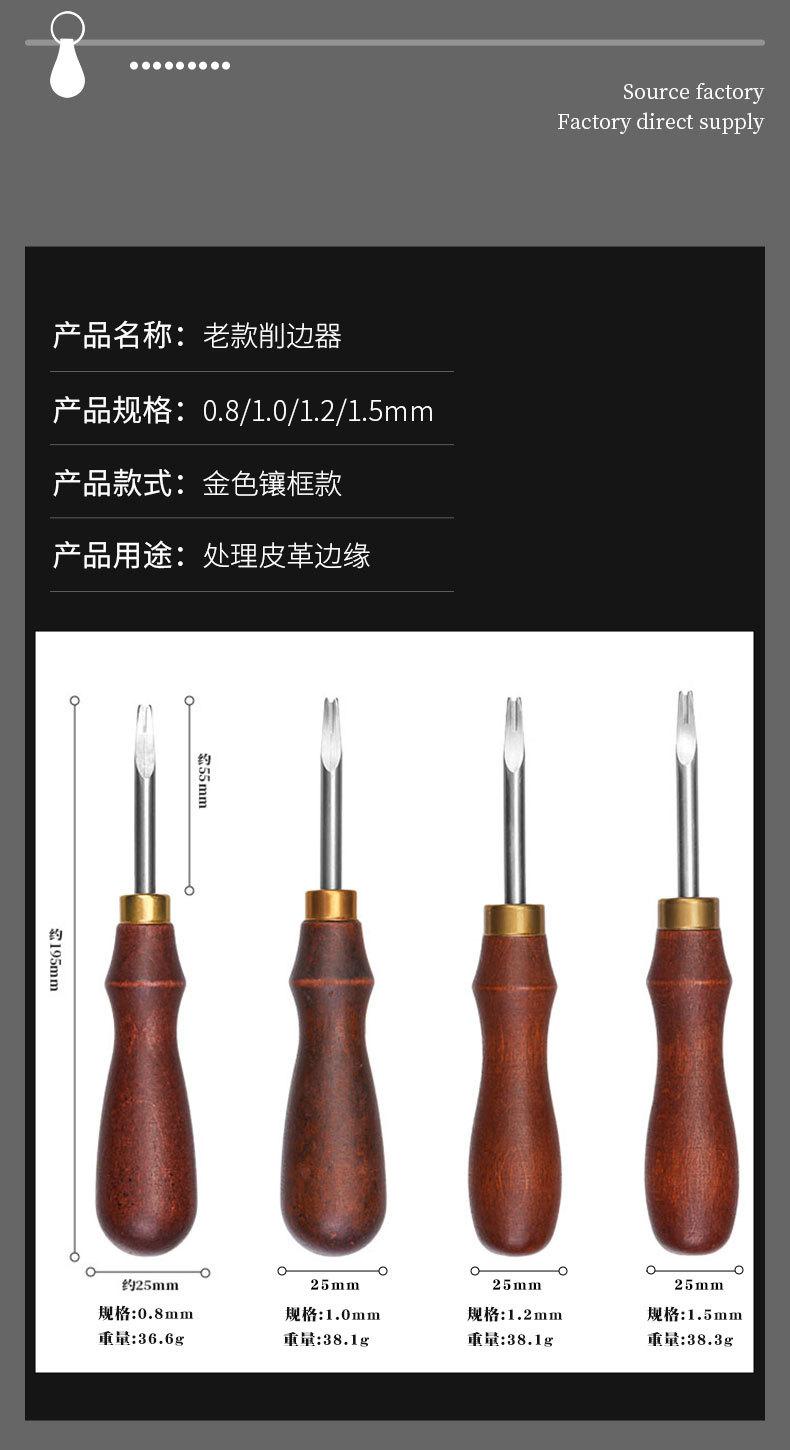 Afilador de madera de durazno con borde dorado para tallado de cuero, tallado artístico en cuero, recortador de bordes, herramienta profesional para cuero, borde cruzado