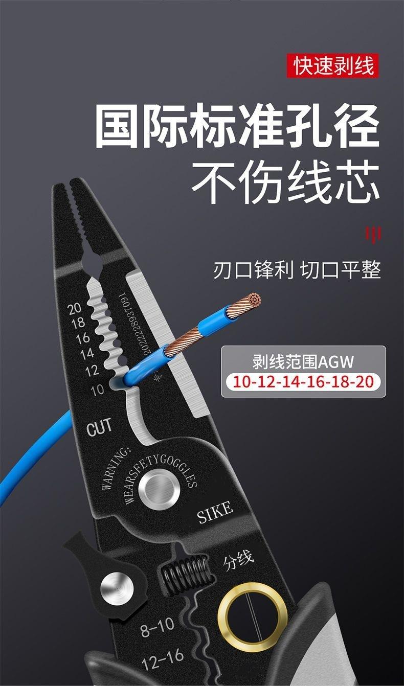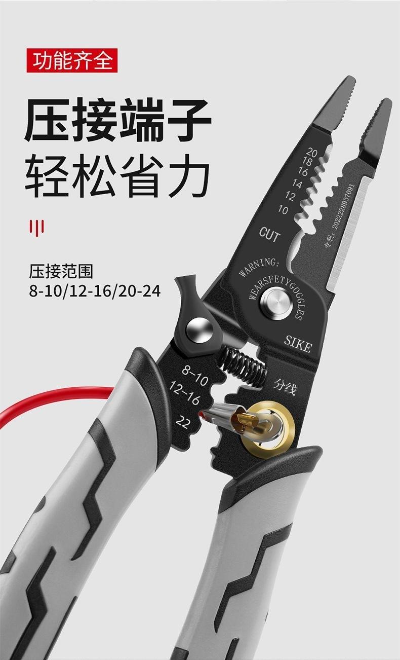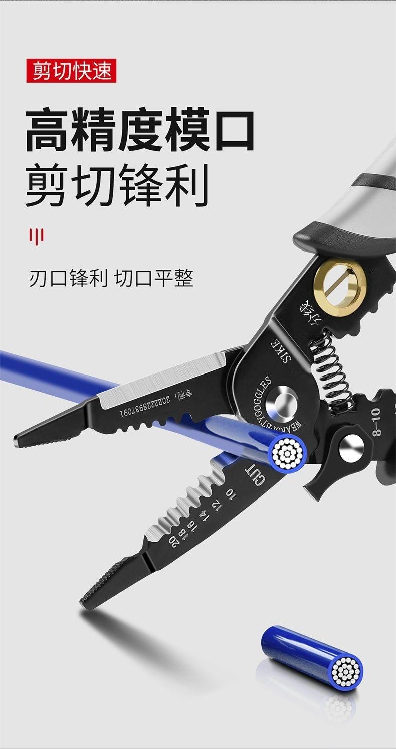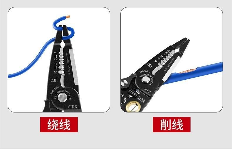 Pelacables multifuncional para electricista, divisor de cables, tijeras para trefilar, prensalíneas, cortaalambres, alicates pelacables