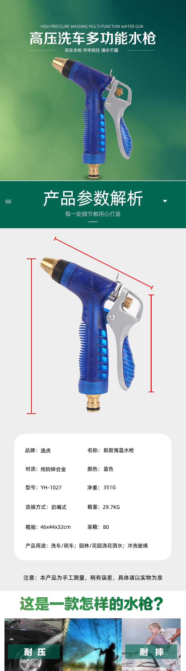Suministro de fábrica, nueva pistola de agua de cobre de alta presión para lavado de autos, herramientas de limpieza para el hogar, boquilla de riego de jardín azul