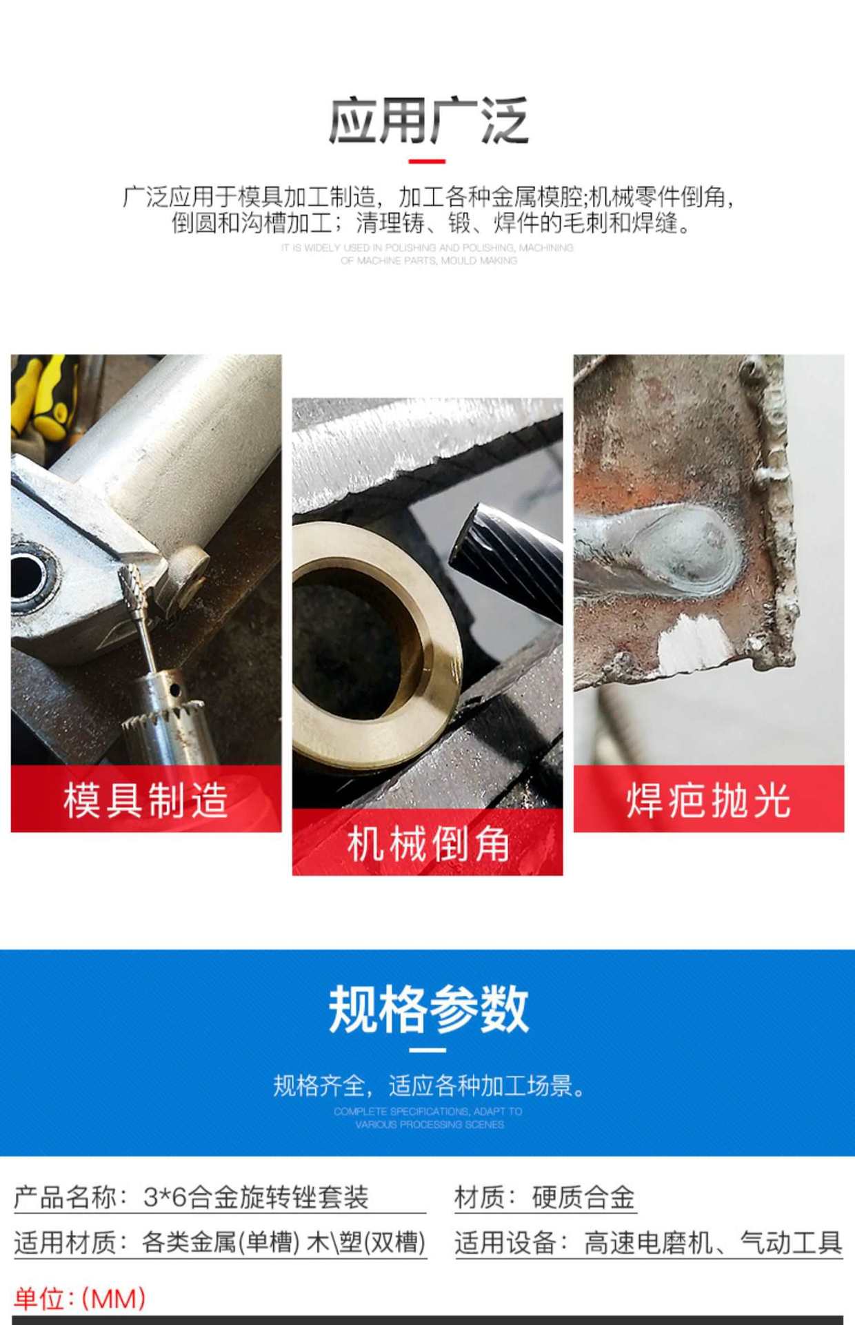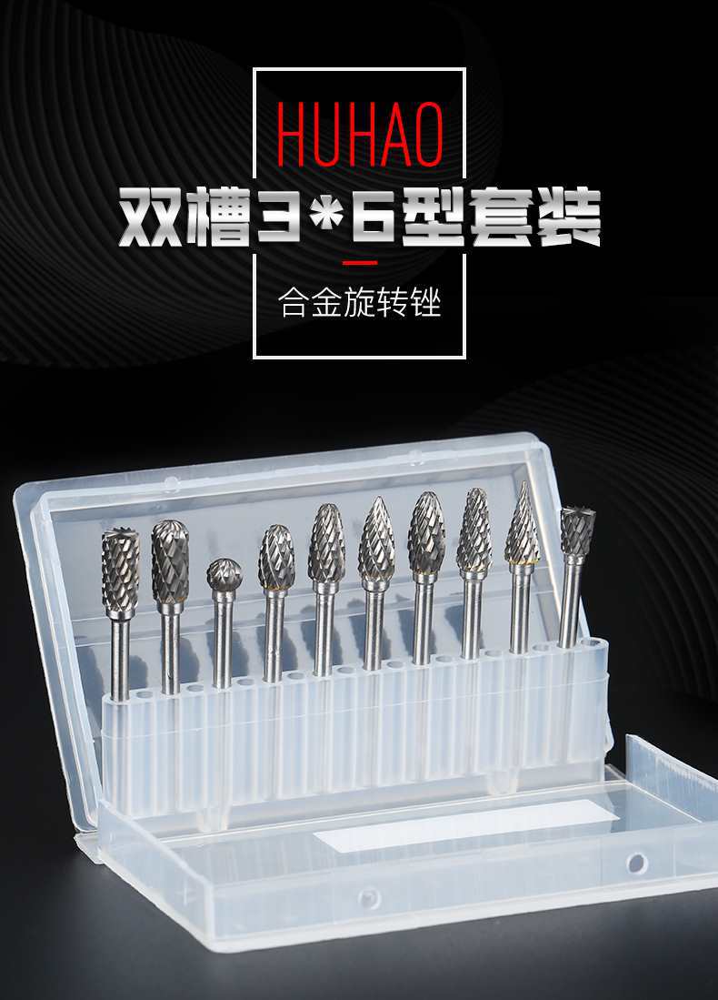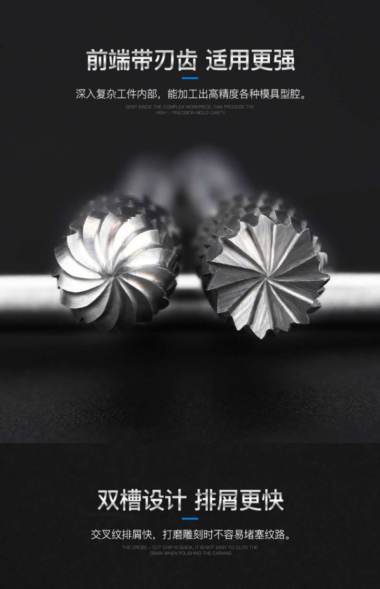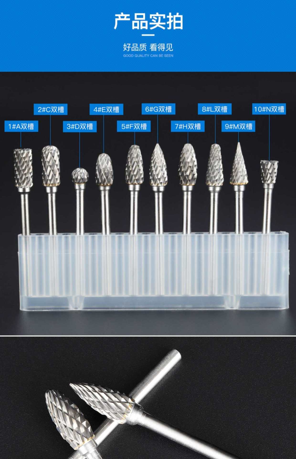 Cabezal de rectificado de metal con lima rotatoria de carburo, cortador de fresado de acero de tungsteno para carpintería, cortador de doble ranura de 3 x 6 mm