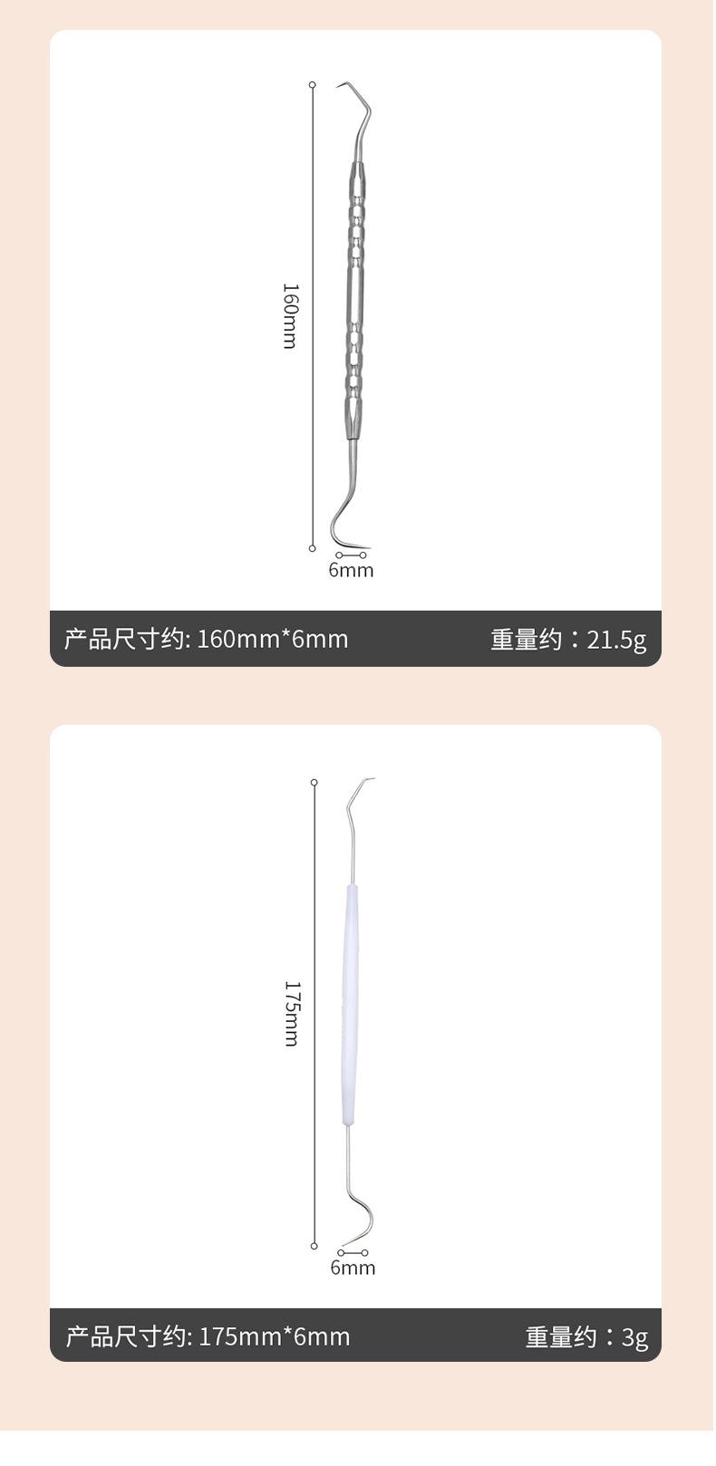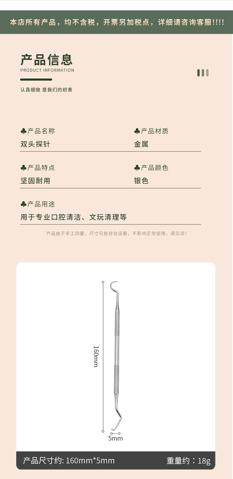 Sonda de acero inoxidable para dentista, sonda de doble cabezal para cálculo dental, sonda para cuidado bucal