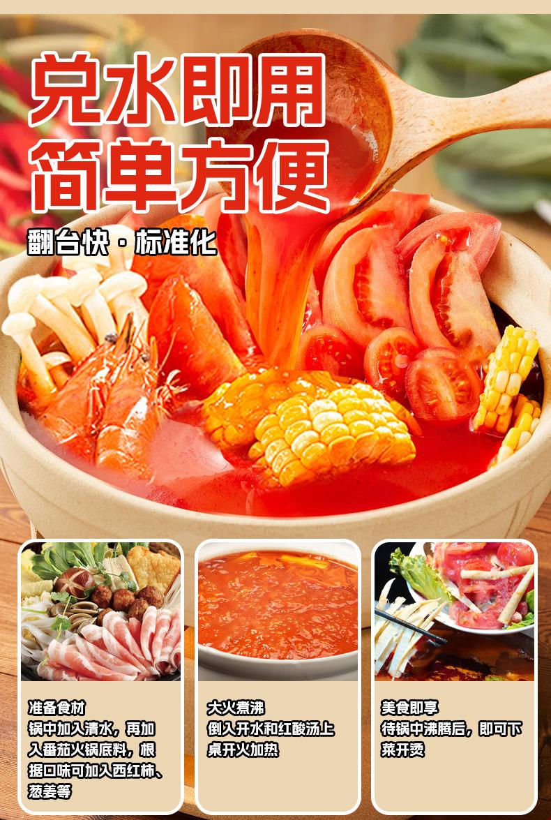 Kétchup Base para Hot Pot Venta al por Mayor Base para Hot Pot Chongqing Restaurante de Hot Pot Sopa Clara No Picante Sopa de Tomate Ingredientes para Hot Pot