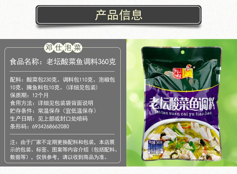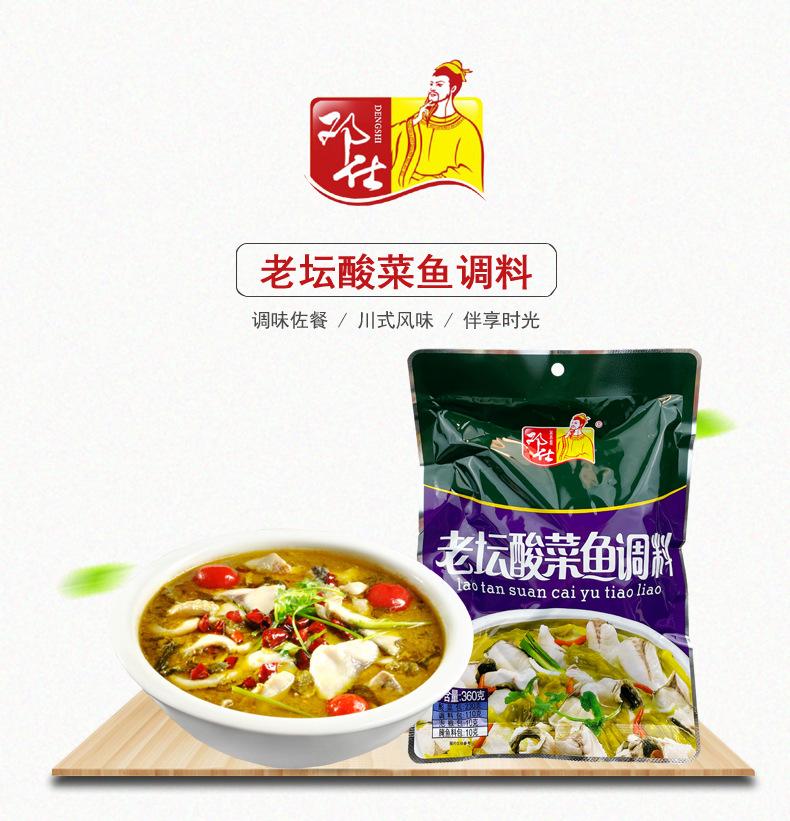 Condimento para pescado encurtido Deng Shi Laotan, bolsa de 360 g, condimento para pescado en olla caliente, bolsa de condimento para pescado encurtido con repollo encurtido Sichuan Laotan